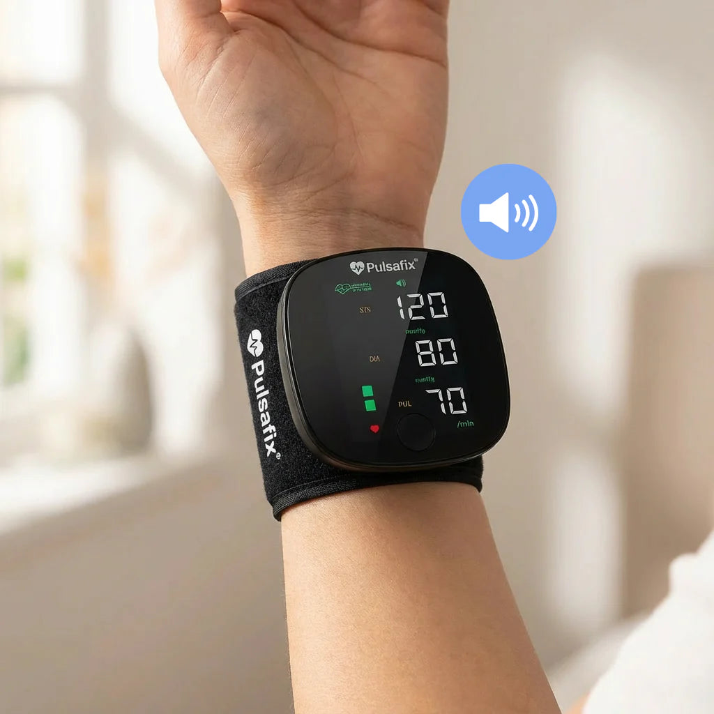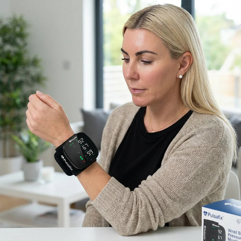 The Pulsafix Monitor 2.0 is designed for home blood pressure tracking. For best accuracy, position your wrist at heart level during measurement and take multiple readings. We recommend comparing your home readings with your doctor's equipment periodically to ensure consistency.