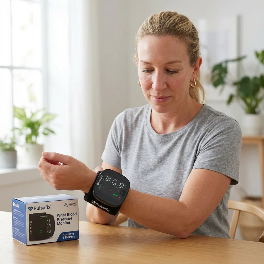The Pulsafix Monitor 2.0 is designed for home blood pressure tracking. For best accuracy, position your wrist at heart level during measurement and take multiple readings. We recommend comparing your home readings with your doctor's equipment periodically to ensure consistency.