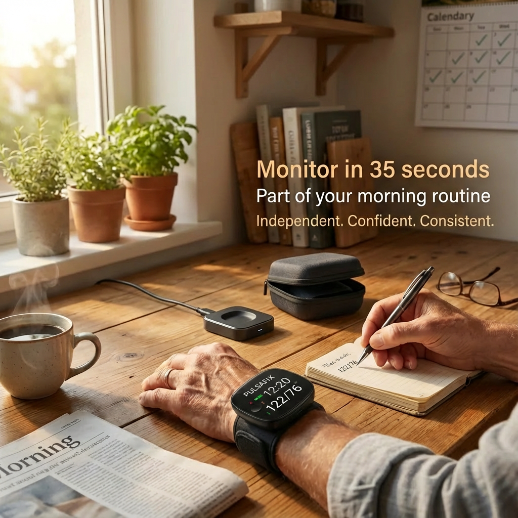 I used to dread checking my blood pressure, worried I'd misread the numbers or find them dangerously high. Now I press one button on Pulsafix and within 35 seconds I hear my exact reading out loud. It doesn't eliminate my hypertension, but it makes managing it so much less stressful and some days, seeing my numbers in the normal range feels like a complete victory.